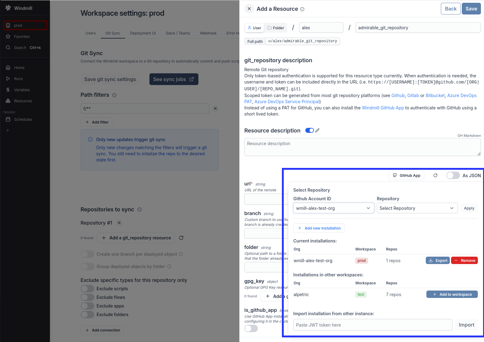 Install the Windmill GitHub App instead of using a long lived personal access token (PAT) to authenticate with GitHub for Git sync