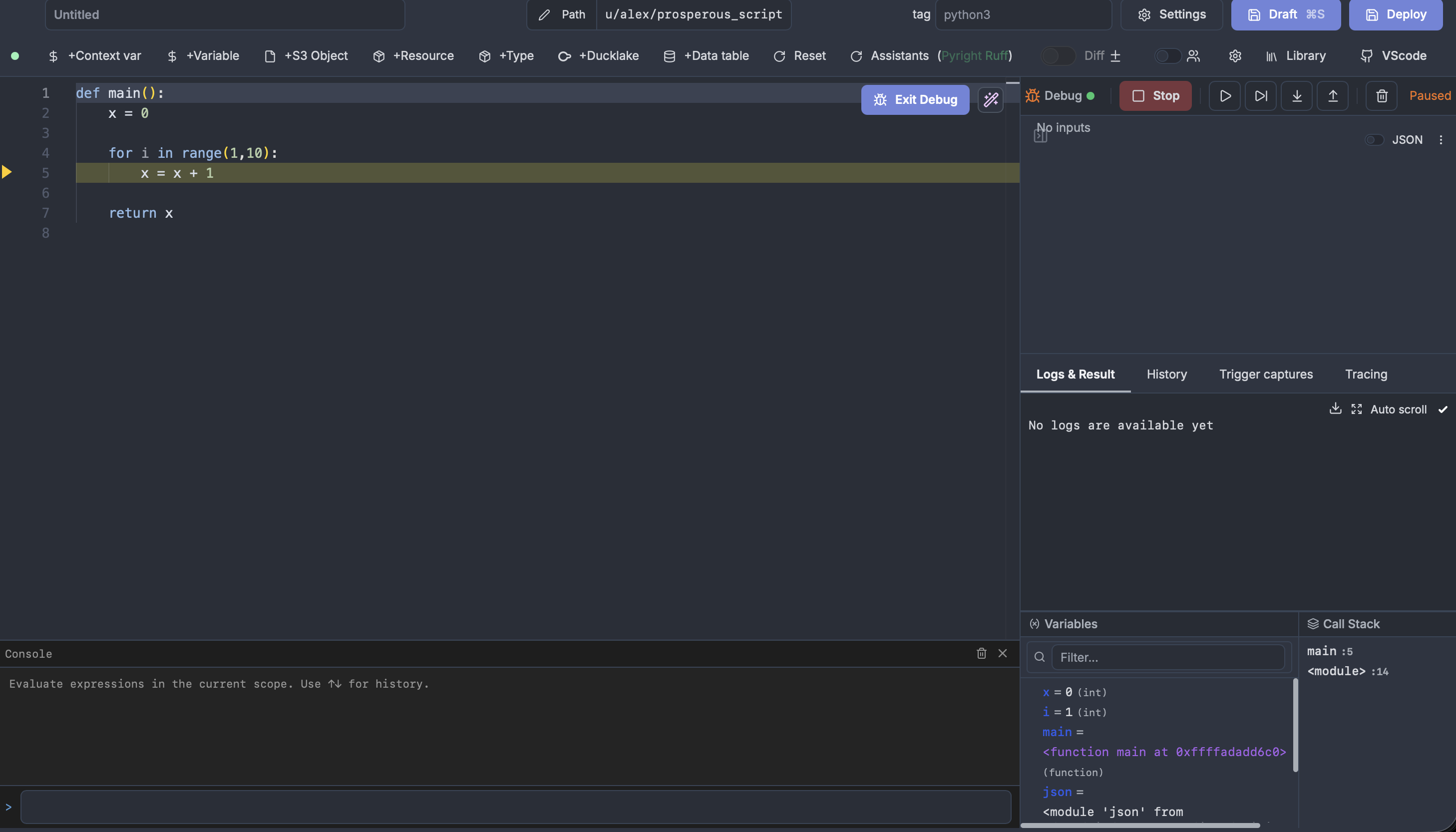 - Evaluate expressions in an interactive console